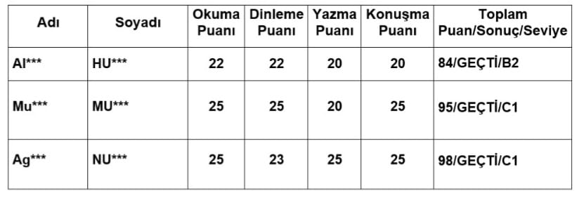 2025-2026 EĞİTİM ÖĞRETİM YILI 2. TÜRKÇE MUAFİYET SINAVI SONUÇLARI