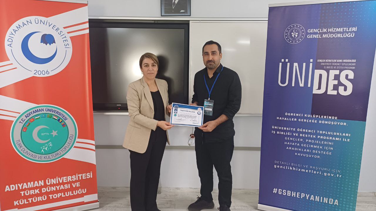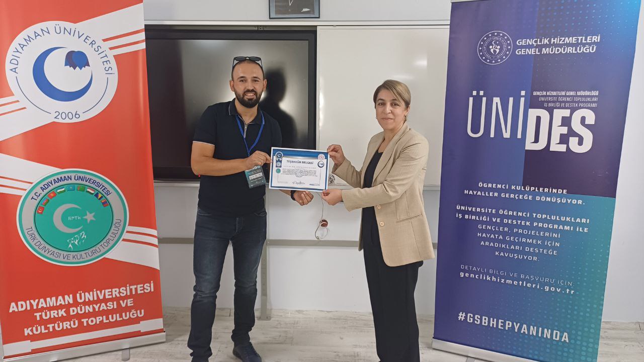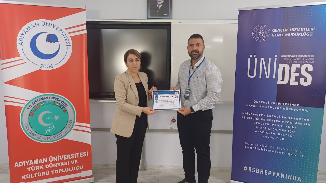 Çalıştay sonunda, katılımcılara katılım belgelerini Adıyaman Üniversitesi Rektör Yardımcısı Sayın Prof. Dr. Selcen YÜKSEL PERKTAŞ takdim etti.