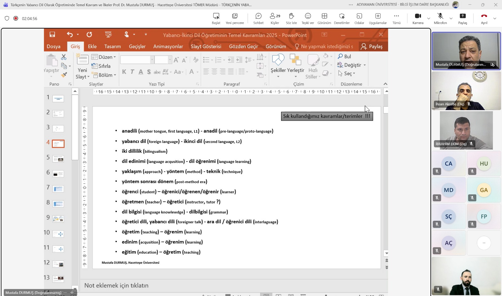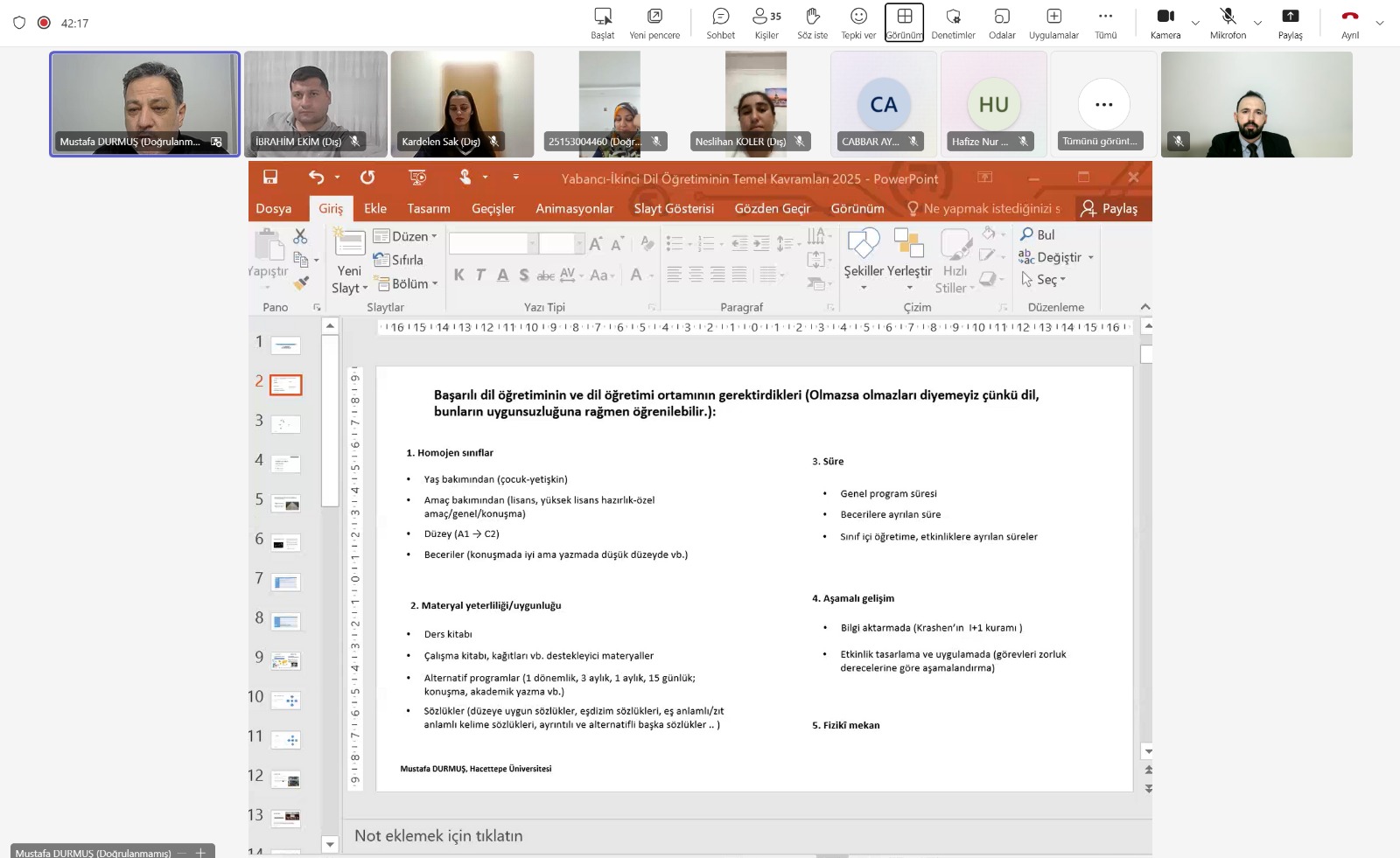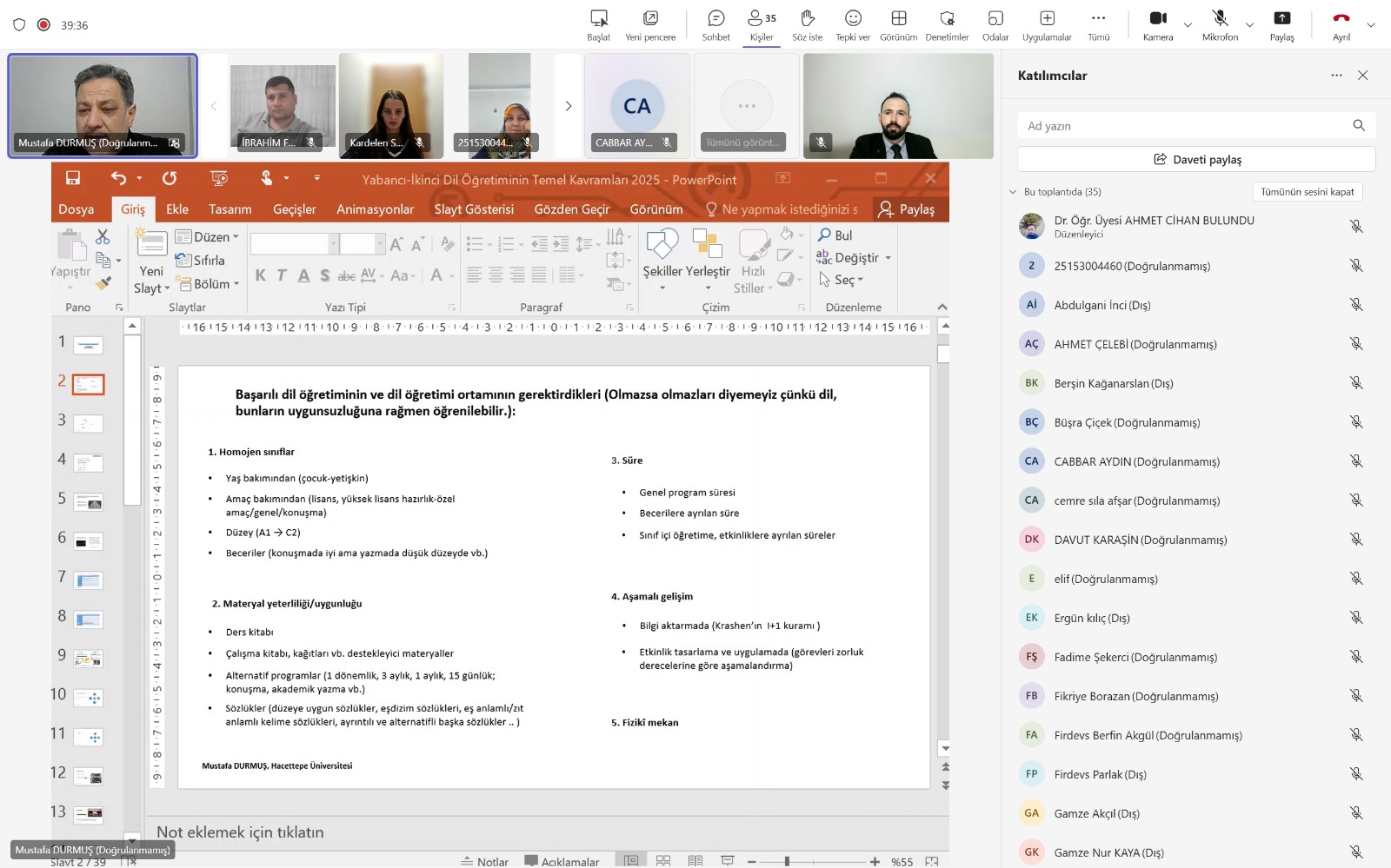 SERTİFİKA PROGRAMIMIZIN İLK DERSİNDEN KARELER - TÜRKÇENİN YABANCI DİL OLARAK ÖĞRETİMİNDE TEMEL KAVRAM VE İLKELER - PROF. DR. MUSTAFA DURMUŞ - HACETTEPE ÜNİVERSİTESİ TÖMER MÜDÜRÜ