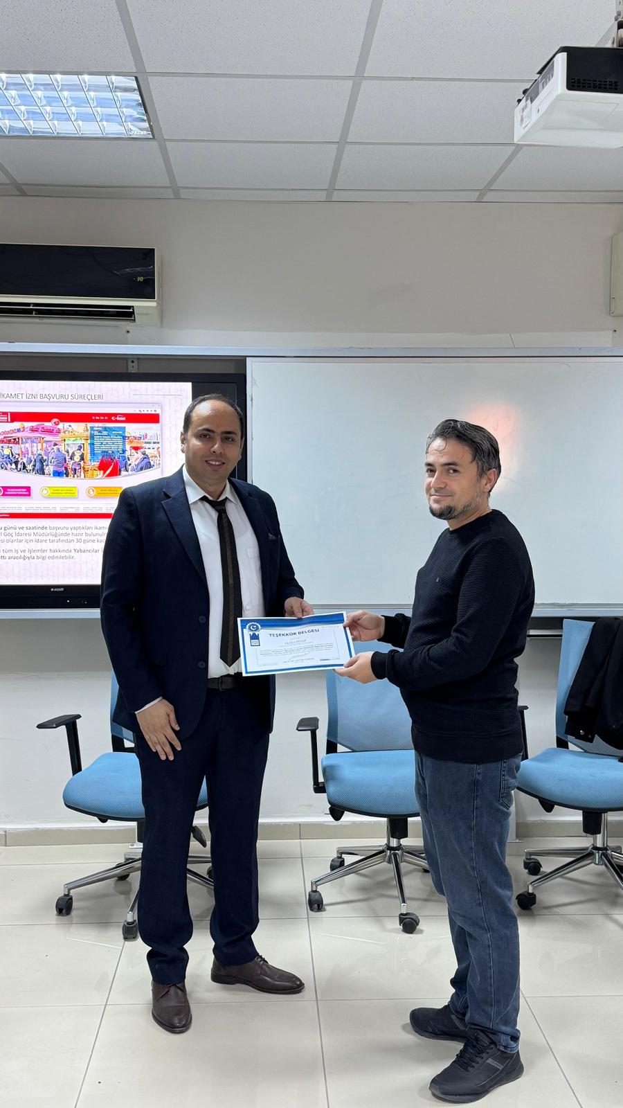 Uluslararası Öğrenci Koordinatörlüğü ve ADYÜ TÖMER iş birliğiyle planlanan, Adıyaman İl Göç İdaresinden yetkililerin sunum yaptığı toplantıyla TÖMER öğrencilerimizin de yer aldığı uluslararası öğrencilerimize dönük bir etkinlik gerçekleştirildi. Bu kapsamda ADYÜ TÖMER Dersliği'nde yapılan sunumun ardından öğrencilerimizin soru(n)larına dönük açıklamalar yapıldı. Etkinliğin ardından Adıyaman İl Göç İdaresi yetkililerine teşekkür belgeleri takdim edildi.
